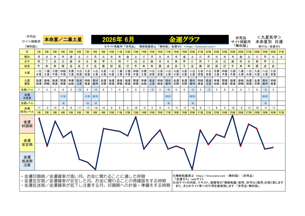 <2026年6月>毎日の金運グラフ