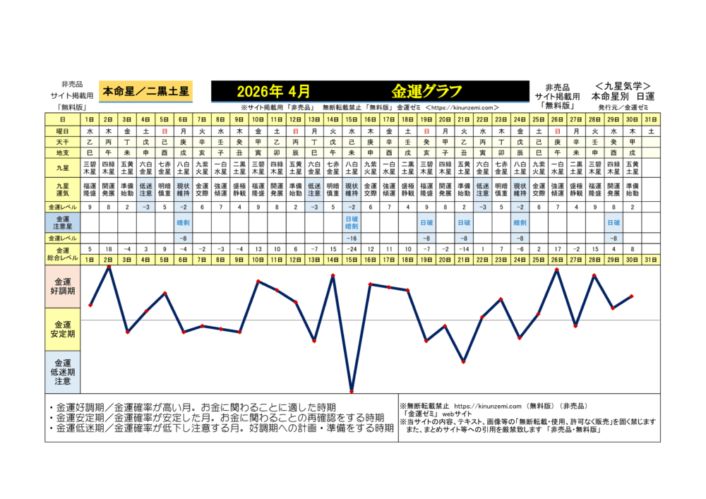 <2026年4月>毎日の金運グラフ