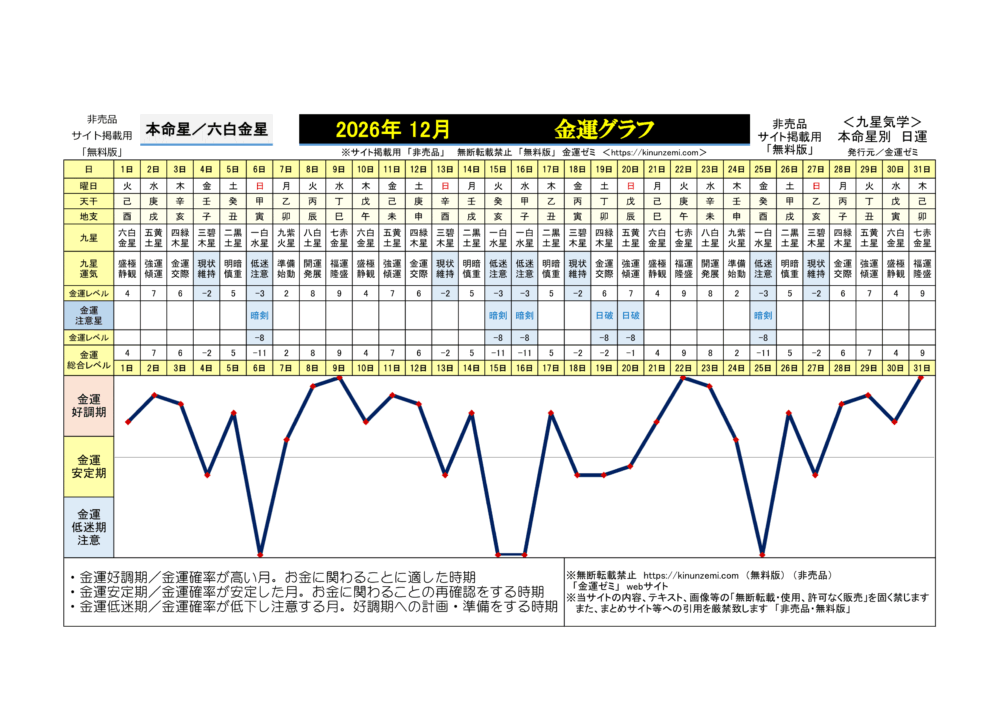 <2026年12月>毎日の金運グラフ