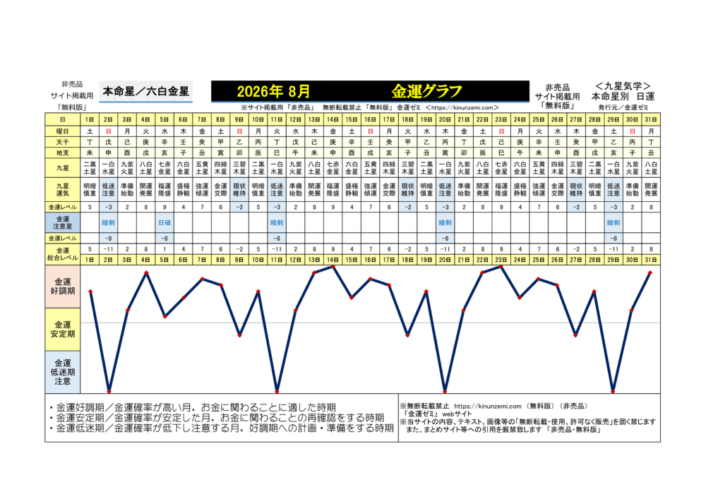 <2026年8月>毎日の金運グラフ
