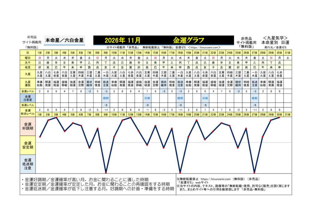 <2026年11月>毎日の金運グラフ