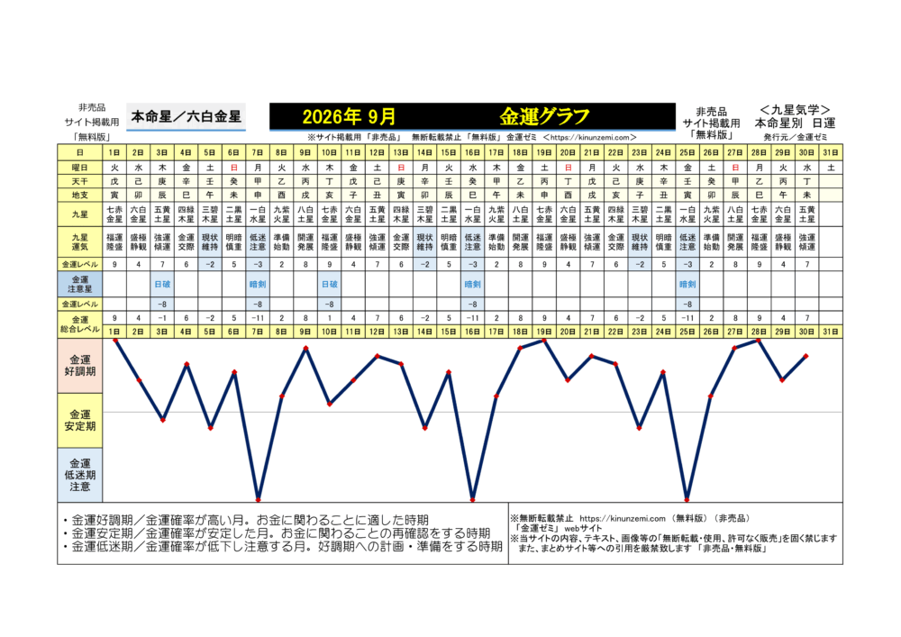 <2026年9月>毎日の金運グラフ