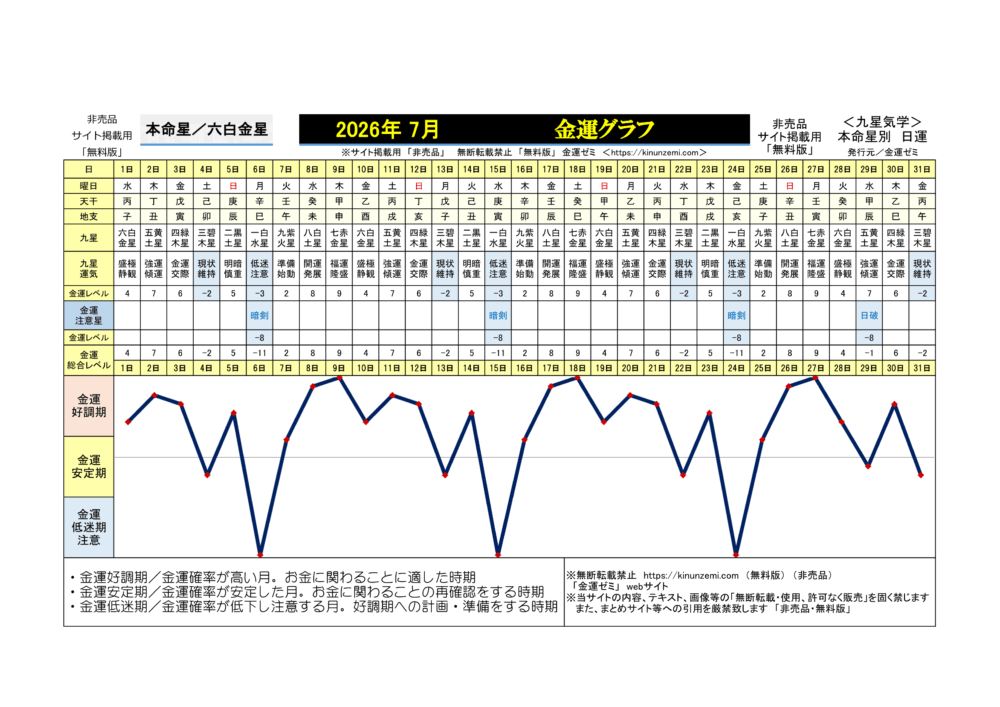 <2026年7月>毎日の金運グラフ
