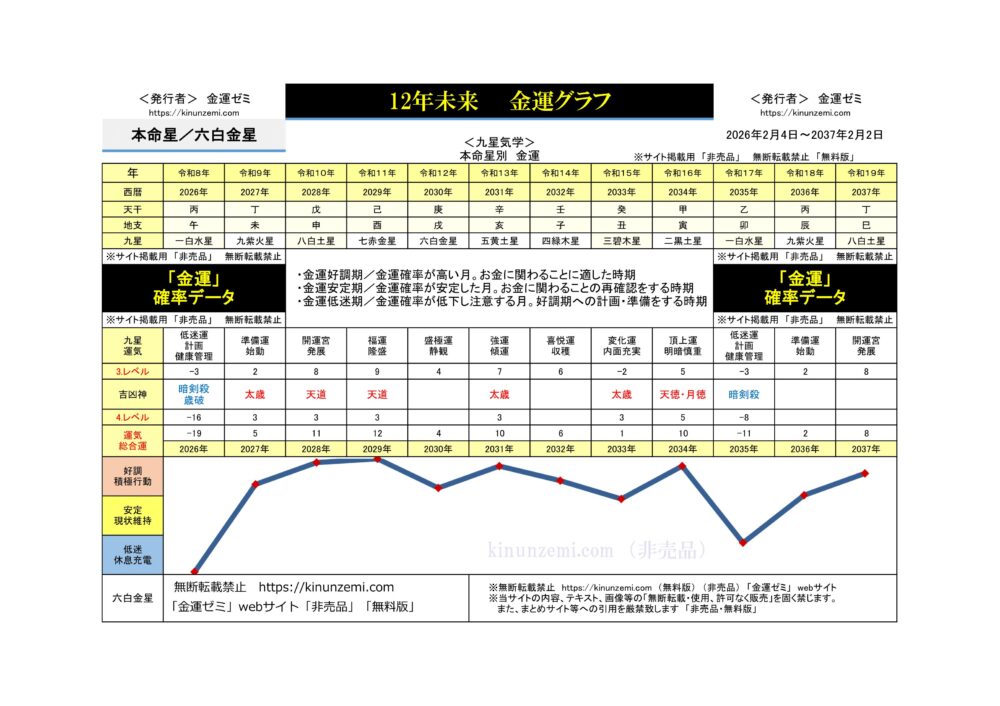 六白金星/12年未来年運、金運グラフ(2026年~2037年)
