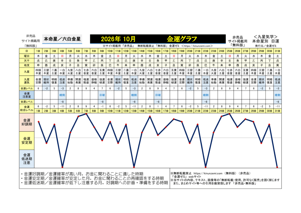 <2026年10月>毎日の金運グラフ