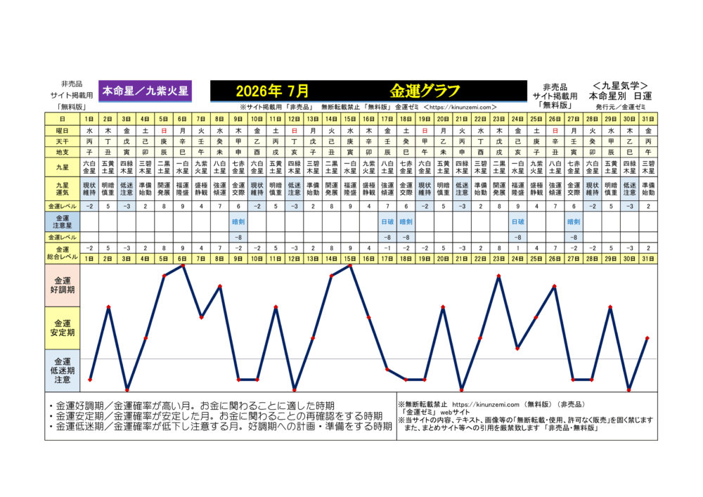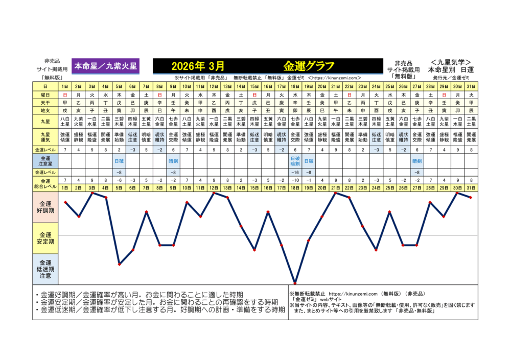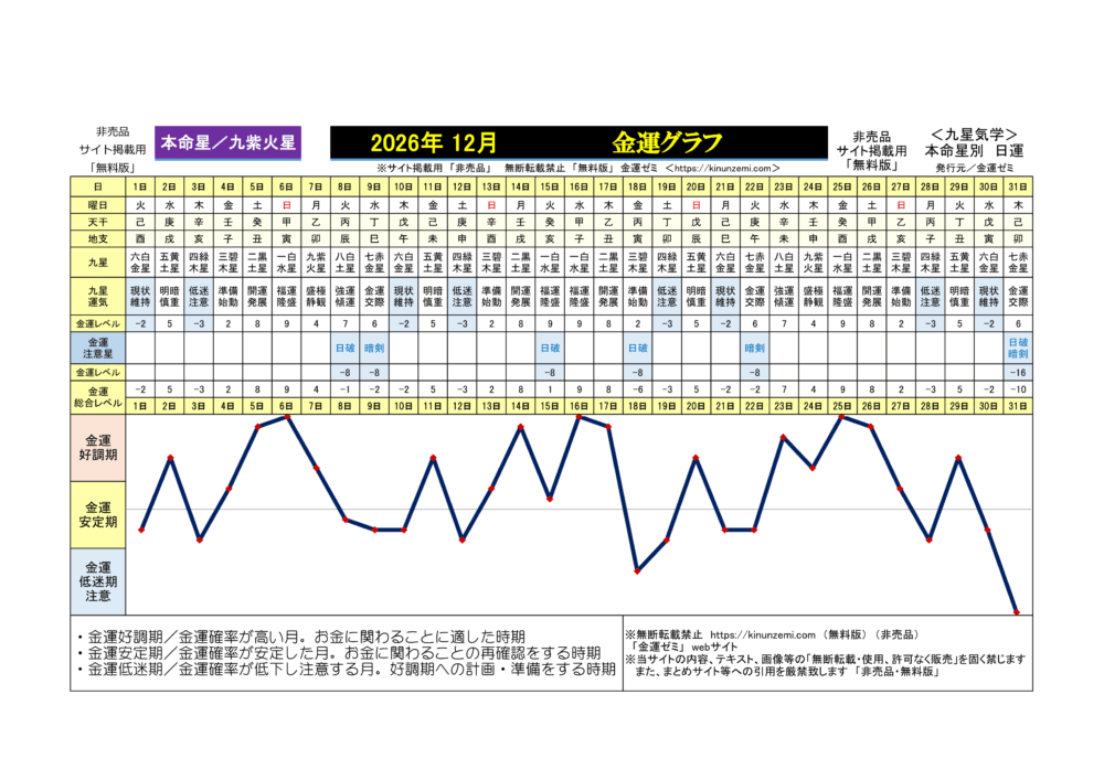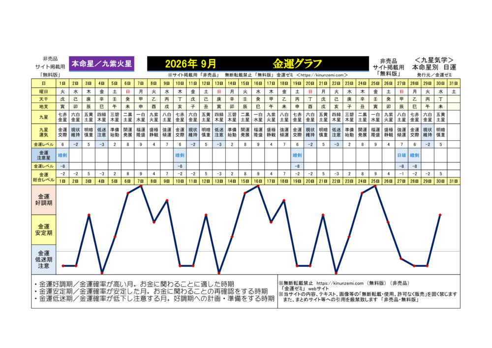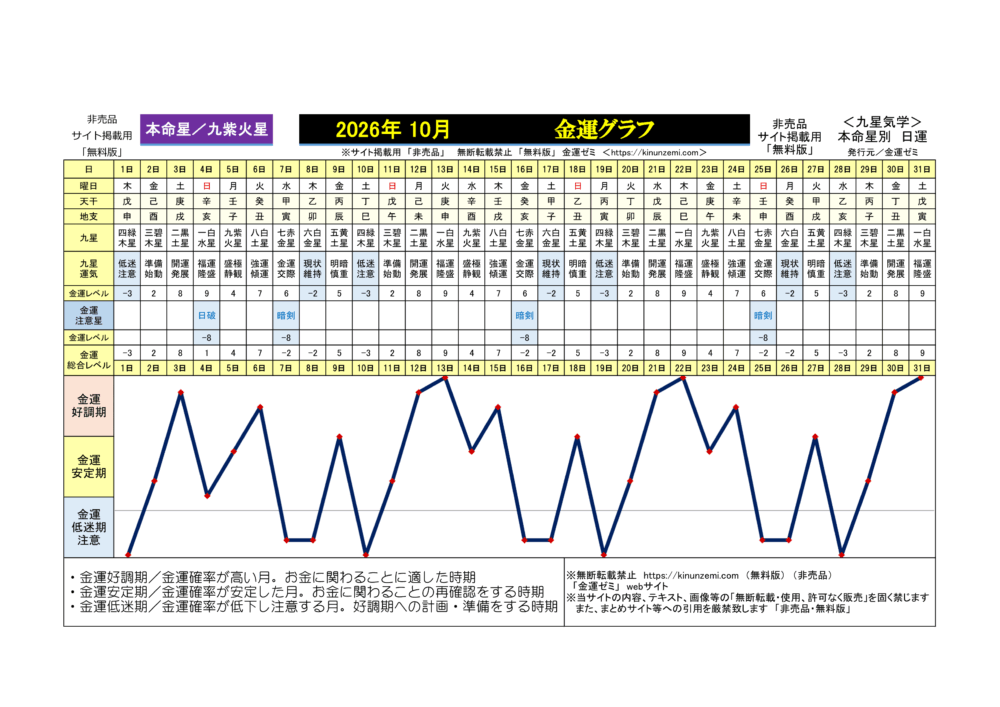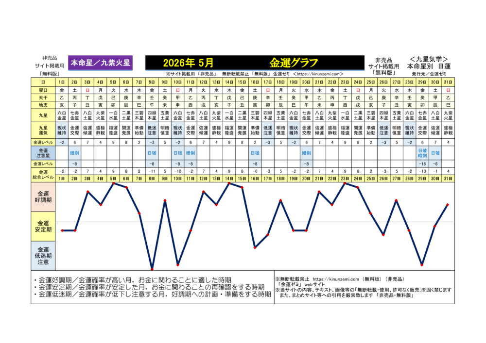 (2026年)九紫火星/金運吉日、大凶日一覧